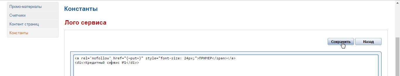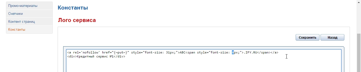 Константы - это информация которая будет отображаться в определенном месте на сайте сервиса. У каждой константы есть свое название, по нему и определяется размещенине той или иной информации.