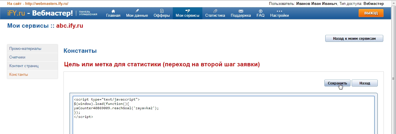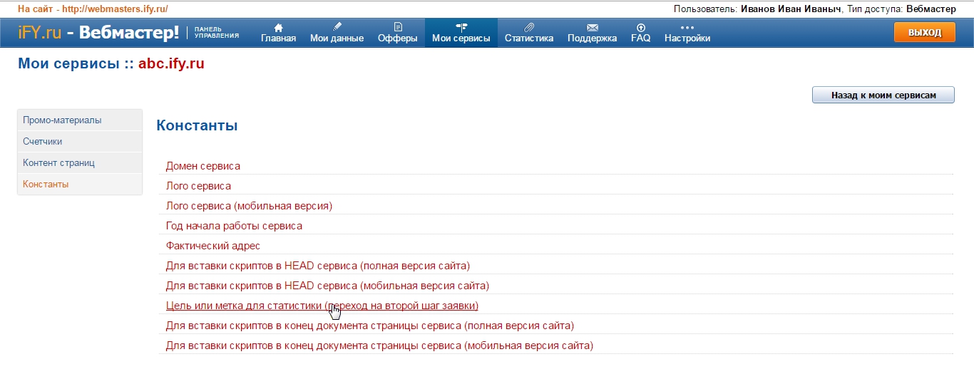 В левом меню выберите раздел "Константы" и потом выберите константу "Цель или метка для статистики (переход на второй шаг заявки)"