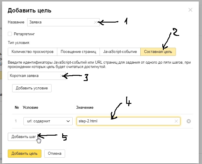 3. "Введите идентификаторы ... которых цель будет считаться достигнутой." вводим -